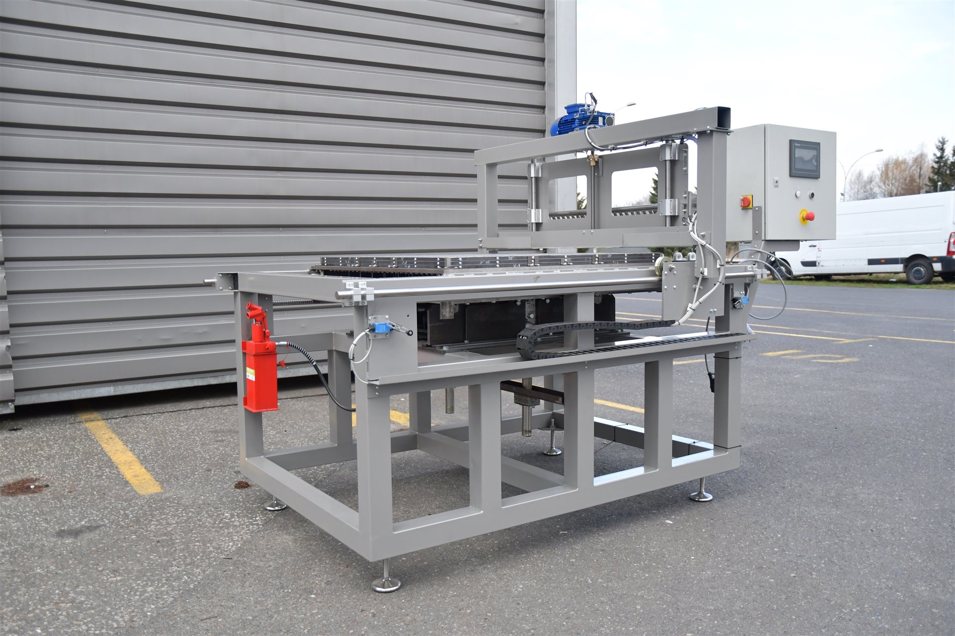 Maszyna charakteryzuje się automatycznym rozkładaniem włókna szklanego, dozowaniem żywicy do formy, posiada hydrauliczny mechanizm wypychania kraty z formy oraz układ wymiany ciepła.