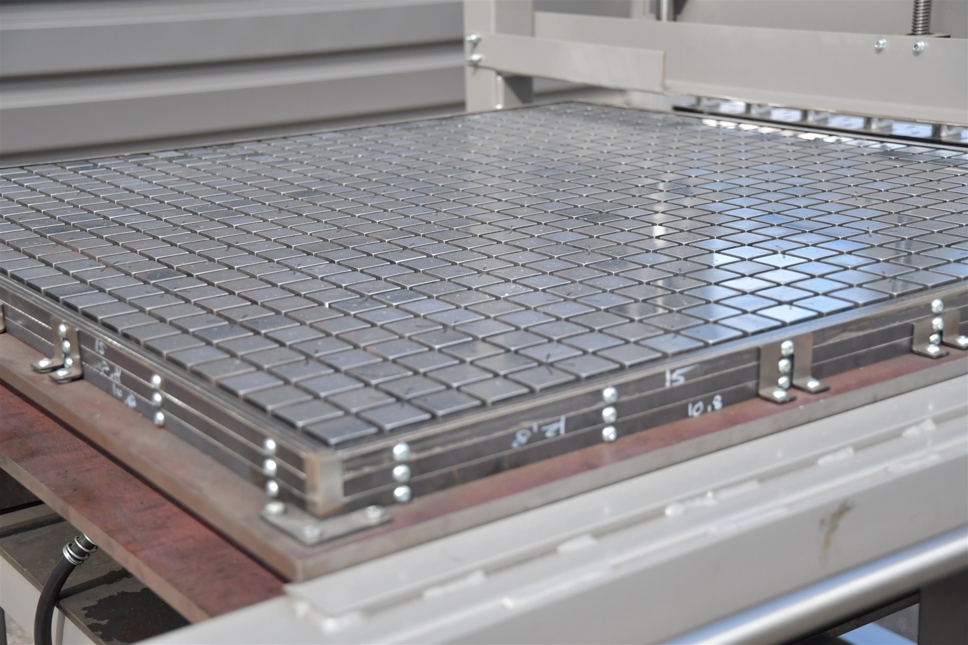 W celu przyspieszenia procesu utwardzania żywicy poliestrowej wykorzystano układ wymiany ciepła, który zamontowany jest pod płytą główną formy kratownicy. Rozprowadzony przewód grzewczy pod płytą na skutek przenikania ciepła przekazuje temperaturę pomiędzy obiektami.